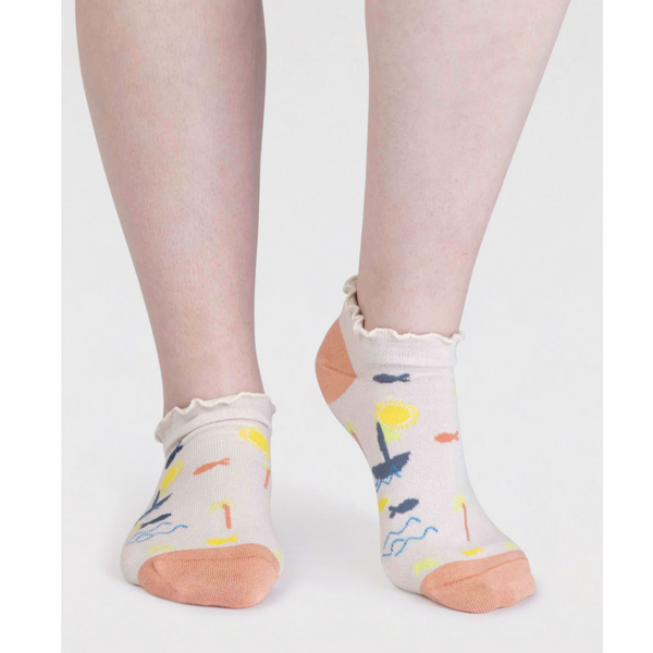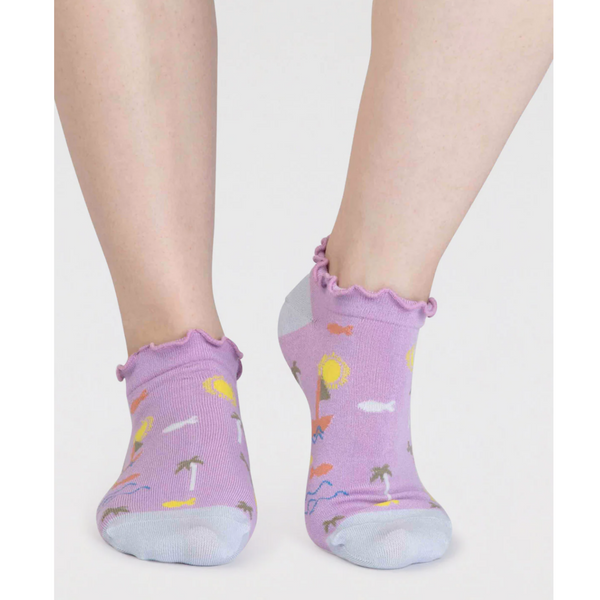 Explore Thought's curated range featuring the Laurel Hemp Watercolour Wrap Midi Skirt in sustainable hemp fabric, the Marlin Organic Cotton Jersey Jumpsuit for effortless summer style, and the Andrina Organic Cotton Broderie Midi Dress in vibrant coral orange. Discover the Kelby Bamboo Tie Dye Jersey Bralette and Seamless Body in recycled nylon blends that mould to your shape with stretchy, comfortable fabric. For footwear, find the Maron Bamboo Sailing Trainer Socks in mint and Ariella Bamboo Glitter Ankle Socks in lavender, both offering natural anti-bacterial and moisture-wicking properties. Each piece reflects Thought's commitment to innovative, sustainable design and guilt-free fashion.