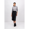 Elegance and coolness are combined in this FYNCH-HATTON midi skirt made of high-quality imitation leather. The straight-cut skirt is elastic and has an additional elastic waistband at the back, while the cuffs at the front are smooth - perfect for combining with  tight-  fitting tops. For more freedom of movement, the skirt also has a  slit  . Dividing seams accentuate the design of the skirt. With a subtle shine and smooth surface, the skirt is both festive with a blouse and pumps, as well as casual and cool with boots and coarse sweaters, a comfortable eye-catcher.