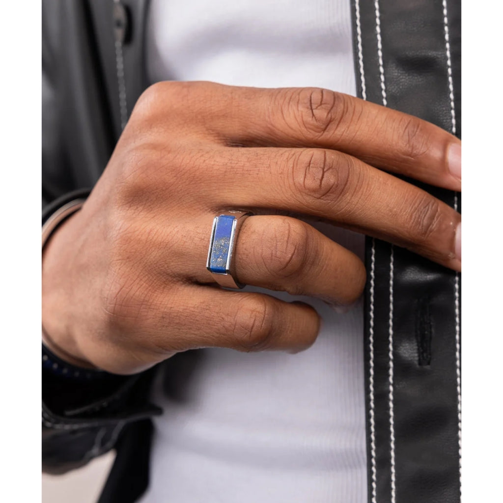 The Signet 7mm Ring is the perfect ring to match with your Pig & Hen bracelets. This subtle yet robust ring is available with a Black Agate, Lapis Lazuli, or Tiger Eye gemstone of the highest quality. Ideal for pairing with your Brontide bracelets.