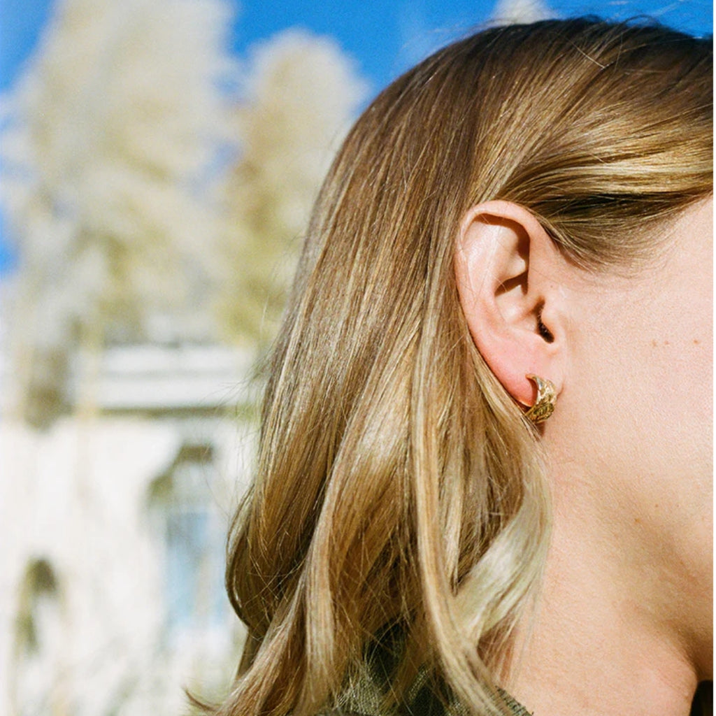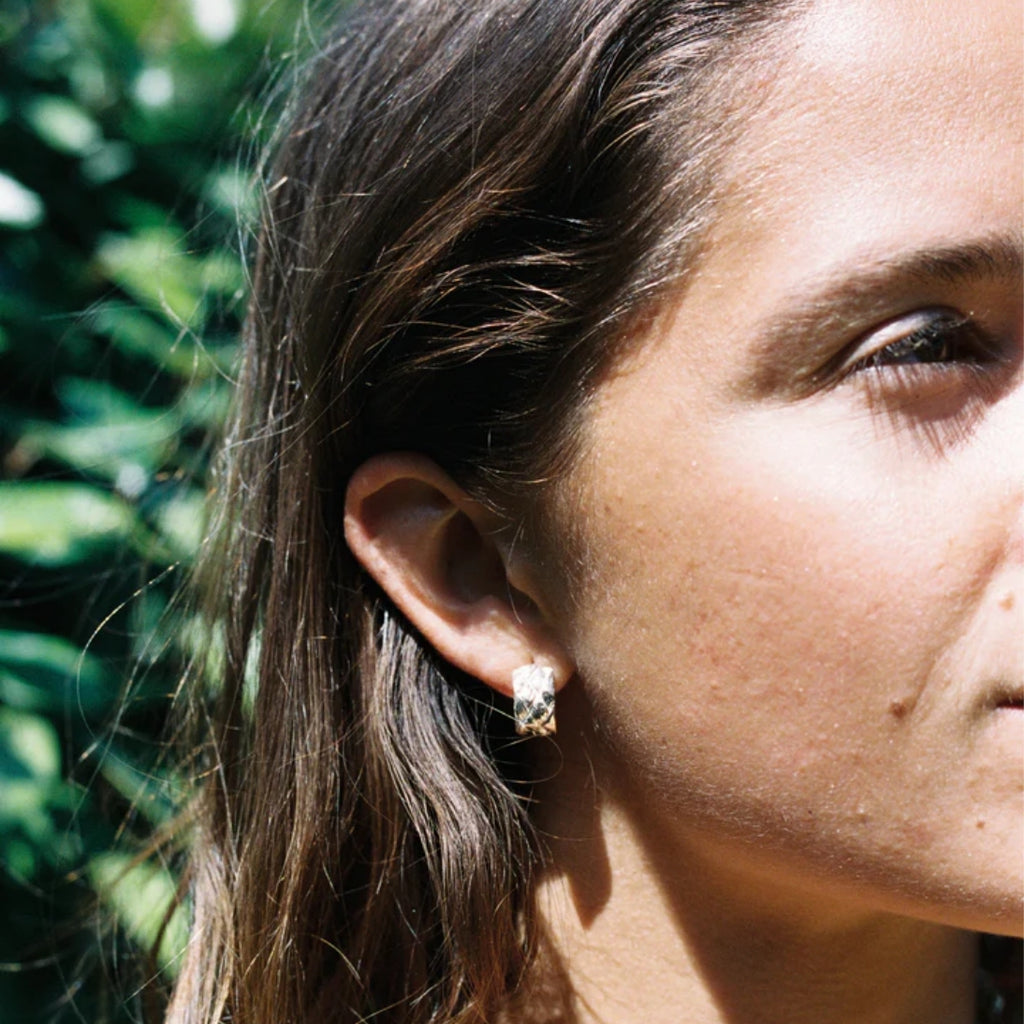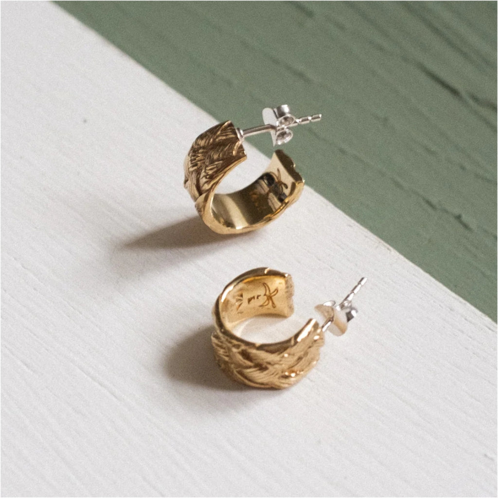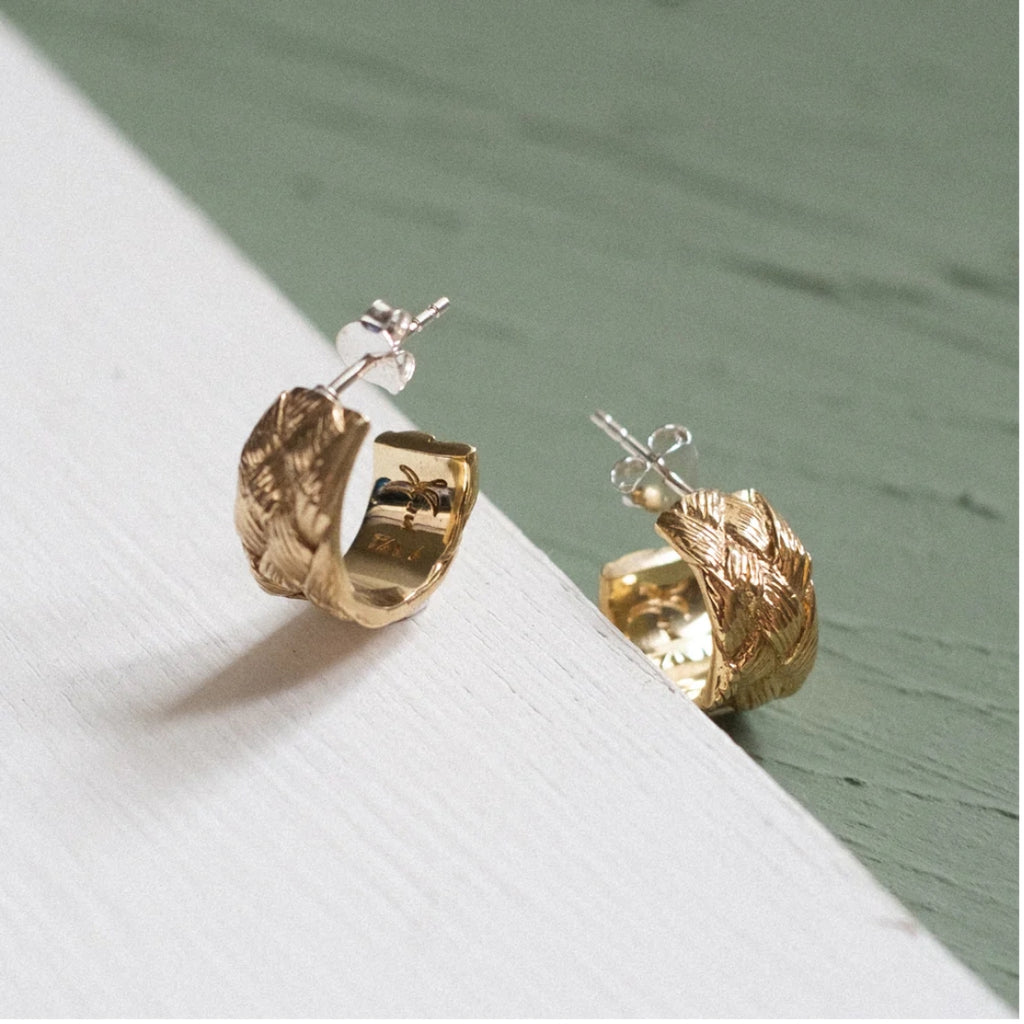 These hoop earrings elegantly transport you from your daytime to your nighttime. Ensuring that you look and feel good throughout the day. Can you spot the little Palm Tree? A little memory of your adventures.